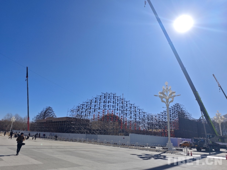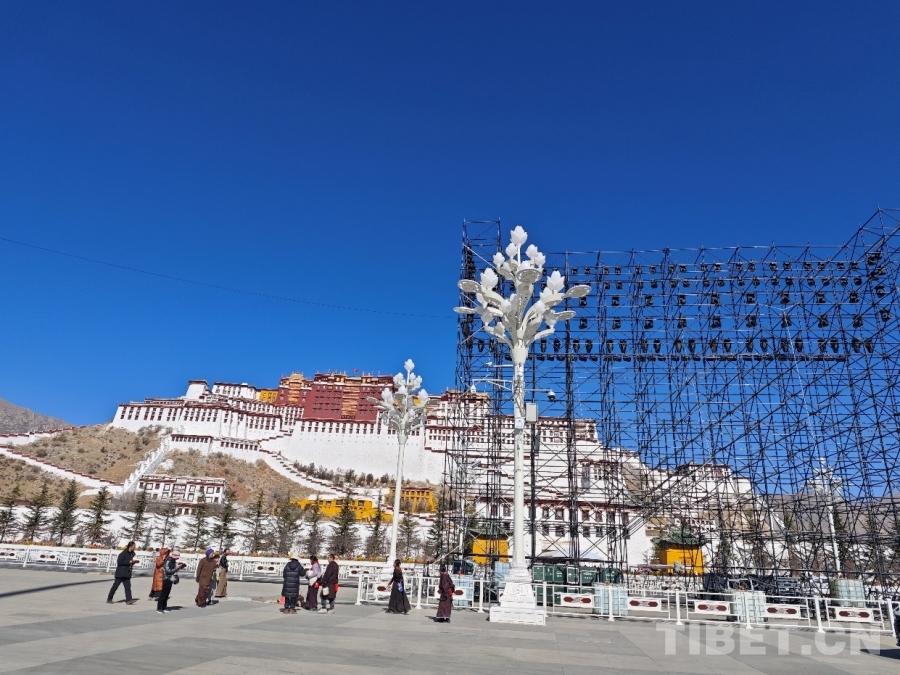 圖為布達拉宮廣場的春晚分會場布置現(xiàn)場 攝影:趙婧茹