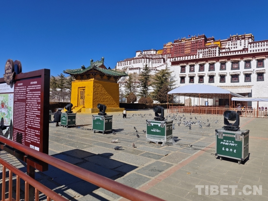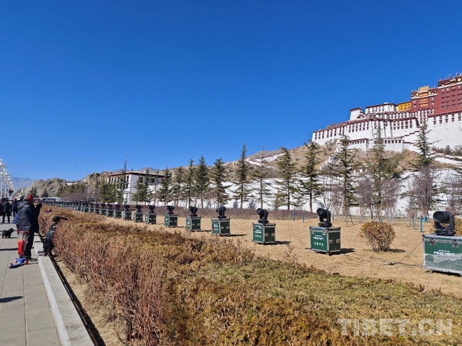 圖為布達拉宮前的燈光設備 攝影:趙婧茹
