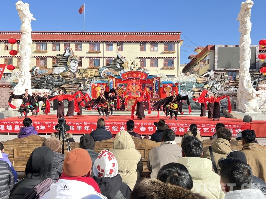 中國(guó)西藏網(wǎng)訊 1月30日,四川省甘孜藏族自治州理塘縣以“春到萬(wàn)家·感恩奮進(jìn)”為主題,在新時(shí)代文明實(shí)踐廣場(chǎng)舉辦春節(jié)、藏歷新年文藝匯演,吸引了上千居民群眾“趕場(chǎng)”觀看。