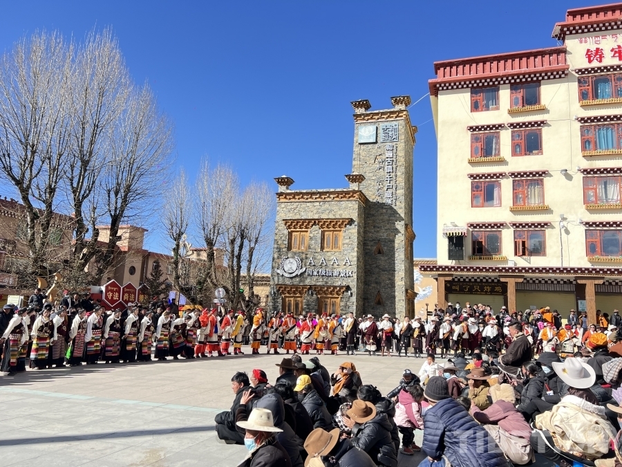 中國(guó)西藏網(wǎng)訊 1月31日,大年初三,“民族團(tuán)結(jié)一家親 同心筑夢(mèng)迎新春”鍋莊表演在四川省甘孜藏族自治州理塘縣新時(shí)代文明實(shí)踐廣場(chǎng)舉行,來自全縣各鄉(xiāng)鎮(zhèn)的數(shù)百名群眾歡聚廣場(chǎng),跳起傳統(tǒng)鍋莊歡樂過新年。
