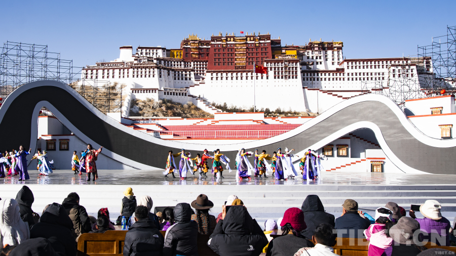 2月1日,農(nóng)歷正月初四,布達(dá)拉宮廣場(chǎng)上的藏式沙發(fā)座無(wú)虛席,由西藏自治區(qū)文化和旅游廳、拉薩市委宣傳部、拉薩市文化和旅游局組織的惠民演出正在總臺(tái)春晚西藏拉薩分會(huì)場(chǎng)的舞臺(tái)上上演。居住在八廓街附近的小拉姆告訴記者,演出每天下午4點(diǎn)開(kāi)始,但她跟著爺爺奶奶每天下午3點(diǎn)便早早出門來(lái)到這里占座。環(huán)顧觀眾席四周,游人早已將觀眾席包圍起來(lái),紛紛拿出手機(jī)打卡拍照,記錄下的不僅僅是極具民族風(fēng)情的演出節(jié)目,更是別具特殊意義的農(nóng)歷春節(jié)。