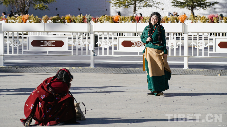 圖為游客在布達(dá)拉宮廣場(chǎng)拍攝藏裝寫真 攝影:趙振宇