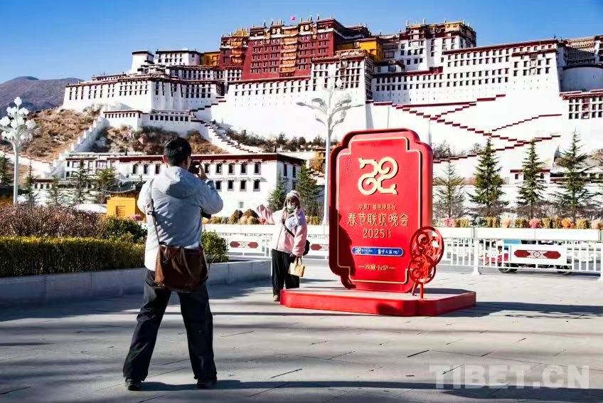 圖為游客在央視春晚西藏拉薩分會(huì)場(chǎng)標(biāo)識(shí)前打卡 攝影:趙振宇