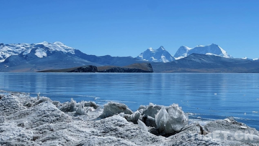 圖為冬日的恰央錯湖面和冰川、雪山融為一體的景觀。攝影:德吉卓瑪