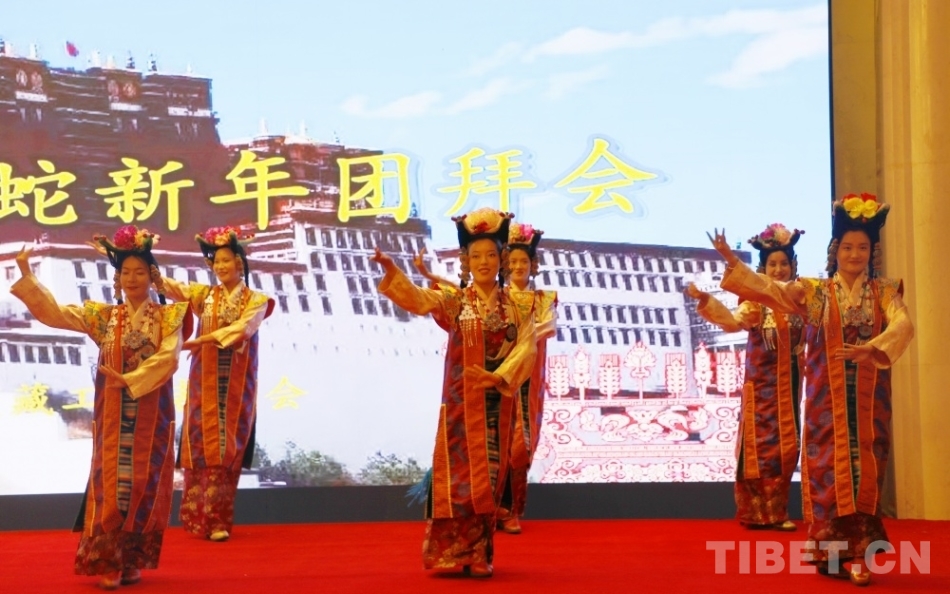 隨著拉薩城關(guān)區(qū)娘熱民間藝術(shù)團(tuán)的歌舞表演開(kāi)始,《祝福》樂(lè)聲悠揚(yáng),團(tuán)拜會(huì)正式拉開(kāi)帷幕?!袄习嚅L(zhǎng)”葉鵬穿上自己的綠軍裝重新演繹民族團(tuán)結(jié)與軍民深情的經(jīng)典歌舞《洗衣歌》;青少年學(xué)生們和著優(yōu)美的旋律,以歡快的舞步跳起《崗巴拉姆》,點(diǎn)燃了現(xiàn)場(chǎng)氣氛;一級(jí)演員劉媛媛演唱的《五星紅旗》《國(guó)家》飽含深情,北京首都軍之魂合唱藝術(shù)團(tuán)的大合唱《共筑中國(guó)夢(mèng)》《走向復(fù)興》慷慨激昂,表達(dá)了大家對(duì)祖國(guó)的熱愛(ài)……還有悠揚(yáng)的扎木念表演、男聲獨(dú)唱等節(jié)目豐富精彩。大家在歡聲笑語(yǔ)中共同感受著節(jié)日的喜悅,共同祝愿西藏在新的一年里再創(chuàng)輝煌,共祝西藏各族人民幸福安康,羅薩扎西德勒。(中國(guó)西藏網(wǎng) 記者/王茜 實(shí)習(xí)生/扎西央措)