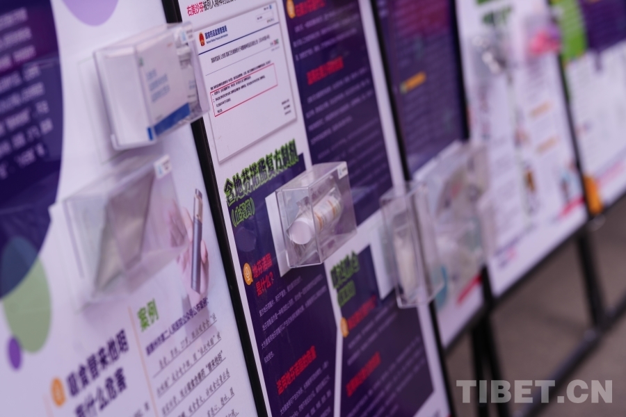 圖為活動(dòng)現(xiàn)場(chǎng),禁毒辦民警向群眾普及防毒禁毒知識(shí)。攝影:德吉卓瑪