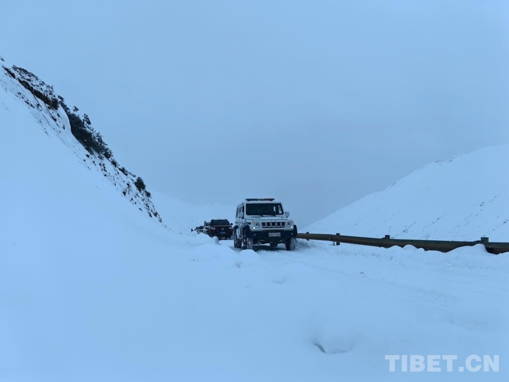 在車隊攀爬益秀拉山的途中,民警們與中交集團一公局保通隊人員,手持鐵鍬將積雪鏟至路邊,指揮車輛緩慢謹慎行駛。當車隊駛入危險路段時,民警更是將速度降至最低,緊緊盯著道路兩旁的雪山,不放過任何一處可能出現(xiàn)危險的細微變化。