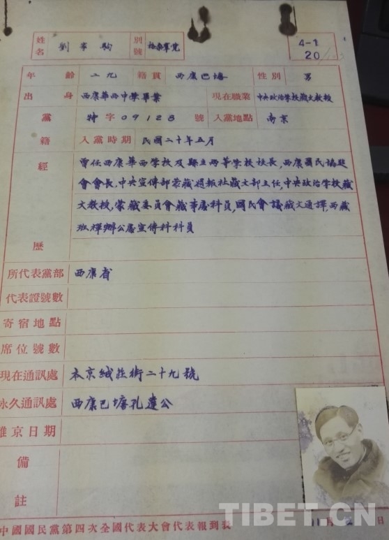 1931年,劉家駒加入中國(guó)國(guó)民黨,成為早期藏族黨員之一。他不僅出席了中國(guó)國(guó)民黨四中全會(huì),還參加了國(guó)民政府在洛陽(yáng)召開(kāi)的國(guó)難會(huì)議,并將自己的著作《康藏的過(guò)去和現(xiàn)在》分發(fā)給與會(huì)人士,大聲呼吁大家重視康藏工作。同年11月21日,“西康旅京同鄉(xiāng)國(guó)防救亡會(huì)”成立,劉家駒被選舉為會(huì)長(zhǎng),在9名執(zhí)行理事中,有6名是藏族,分別為劉家駒(格桑群覺(jué))、江安西(洛松鄧珠)、馬定西、佛平西、楊紹西、馮云仙(女)?!秶?guó)聞周報(bào)?名人錄》第8卷20期專門對(duì)時(shí)年29歲的劉家駒進(jìn)行了介紹。此時(shí)的他,已經(jīng)是中央政治學(xué)校(蒙藏政治訓(xùn)練班)的藏文教授,在教育領(lǐng)域發(fā)揮著重要作用,為培養(yǎng)了解藏族文化和語(yǔ)言的人才貢獻(xiàn)力量,為邊疆治理提供智力支持。