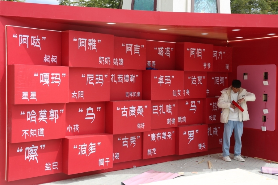 圖為舞臺(tái)右側(cè)的打卡墻