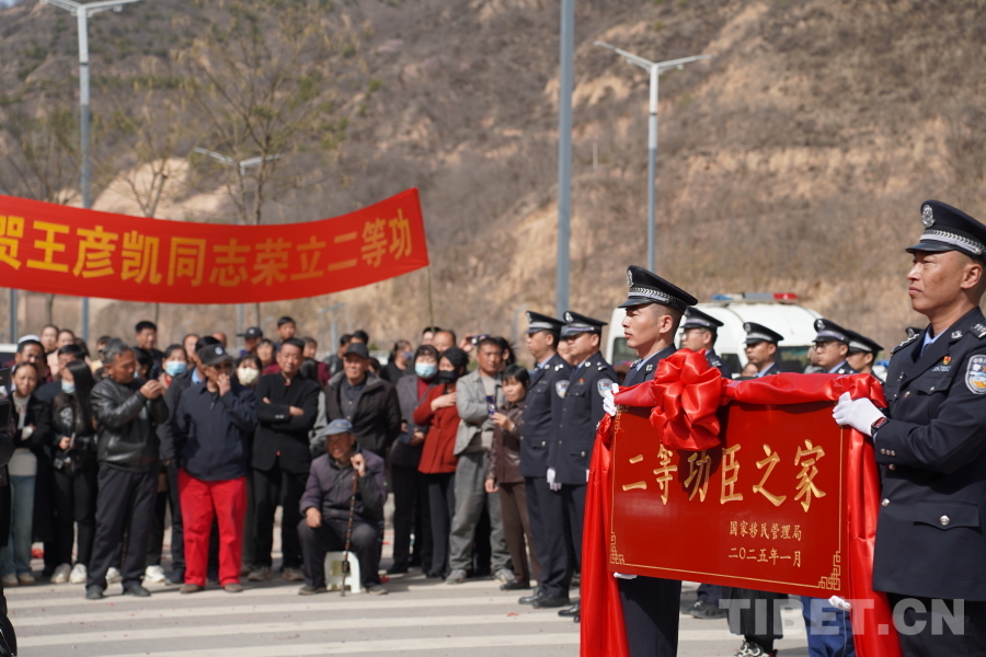 中國西藏網(wǎng)訊 近日,西藏邊檢總站山南邊境管理支隊跨越千里遠赴甘肅省慶陽市華池縣,與駐地公安局、退役軍人事務(wù)局及地方黨委政府等組成送獎隊伍,為榮立個人二等功的王彥凱同志“送獎到家”。