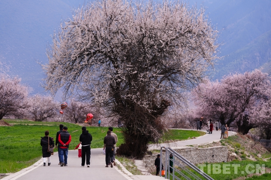 圖為布久鄉(xiāng)朵當村桃花園的游客 攝影:德吉卓瑪