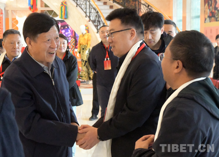圖為金書波歡迎西藏自治區(qū)民營企業(yè)家學(xué)習(xí)參觀團(tuán)抵京
