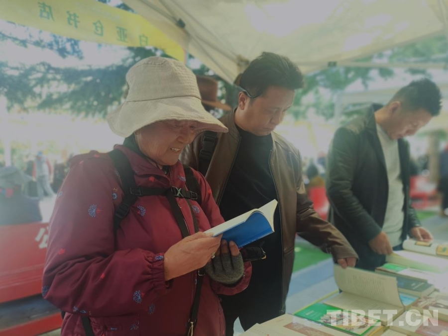 圖為4月19日,第二屆“拉薩春日書會(huì)”宗角祿康公園主會(huì)場內(nèi),市民在書攤前翻閱書籍 攝影:趙釗