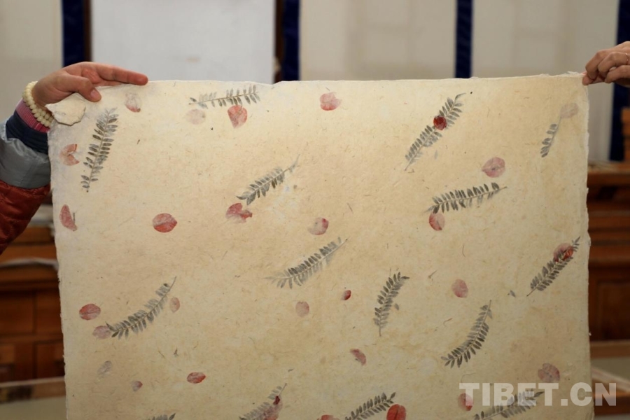 漸漸地,這位吃著“百家飯”長大的傳承人也有了自己的造紙門道:制作繁復,就走定制線路;銷路不好,就去取長補短。從單純的白紙到鮮花紙、褶皺工藝紙,從筆記本、畫冊、唐卡畫紙到請?zhí)?、燈籠,加里和徒弟們依托傳統(tǒng)工藝,開發(fā)推廣出不少兼具實用性和觀賞性的紙藝制品。