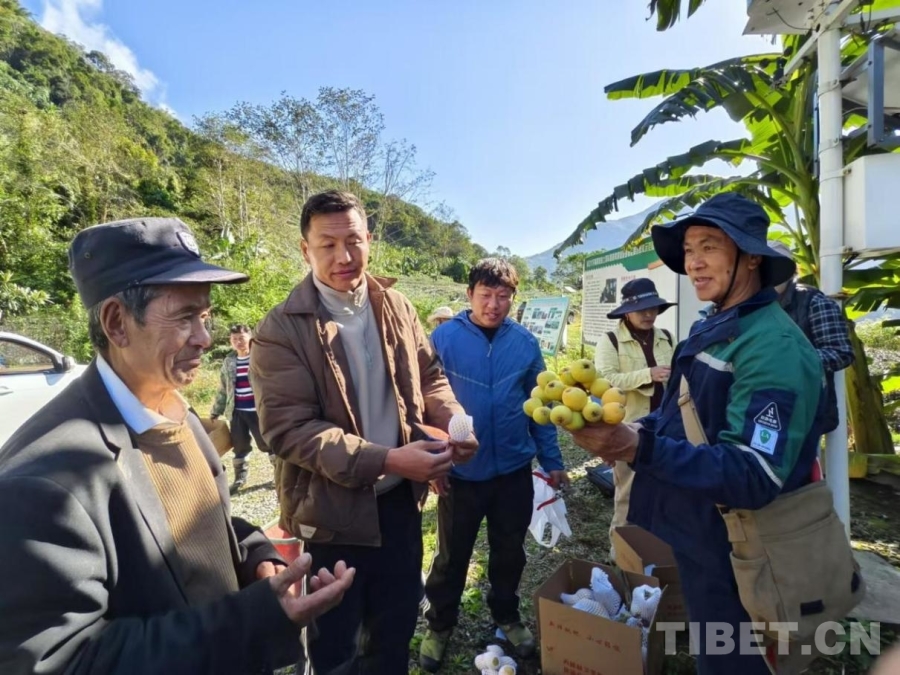 “墨脫雨水這么多,更需要避雨栽培,把果樹(shù)上面遮一下,品質(zhì)更好,病蟲(chóng)害更少,甜度也會(huì)高一兩個(gè)點(diǎn)?!痹谌ネ屡d村果園的路上,張澤煌和司機(jī)一談起目前枇杷的技術(shù)痛點(diǎn),便滔滔不絕。他認(rèn)為,白肉枇杷要成為致富果,技術(shù)帶動(dòng)產(chǎn)業(yè)發(fā)展是關(guān)鍵。