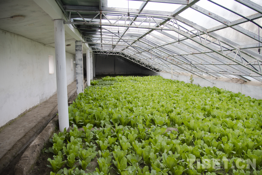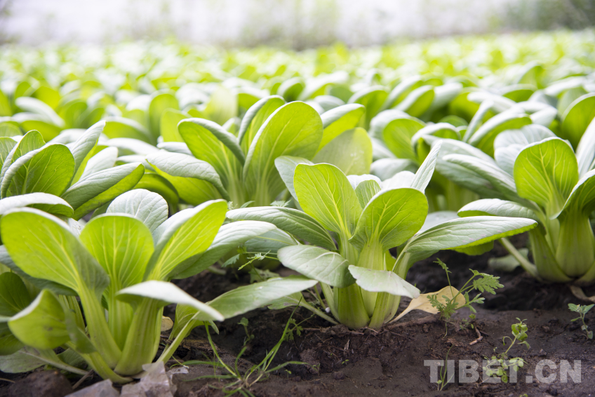 圖為定日縣長所鄉(xiāng)嘎旦村震后修繕的蔬菜溫室大棚內長勢正旺的綠葉菜 攝影:趙振宇