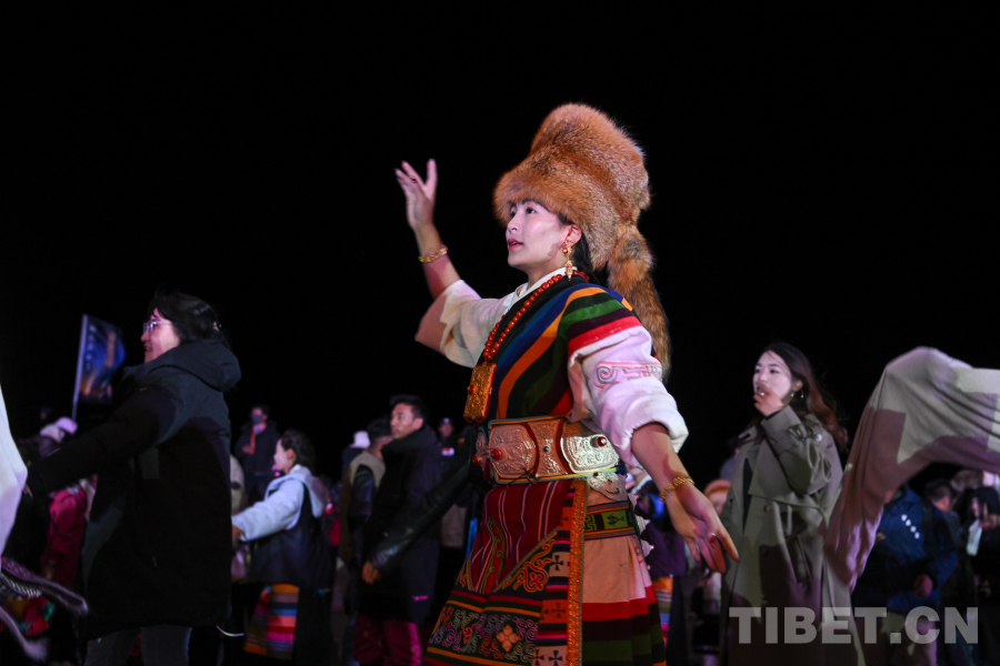 中國西藏網(wǎng)訊 5月18日晚,“情定當(dāng)雄”篝火鍋莊晚會(huì)在西藏拉薩市當(dāng)雄縣賽馬場舉行。晚會(huì)現(xiàn)場,以燃燒的篝火為中心,當(dāng)?shù)孛癖娚碇?jié)日盛裝跳起歡快的鍋莊舞。熱情奔放的旋律,洋溢著濃郁的民族風(fēng)情,讓來客們沉浸式體驗(yàn)鍋莊,感受原生態(tài)淳樸的歌舞表演。(中國西藏網(wǎng) 記者/旦曲)