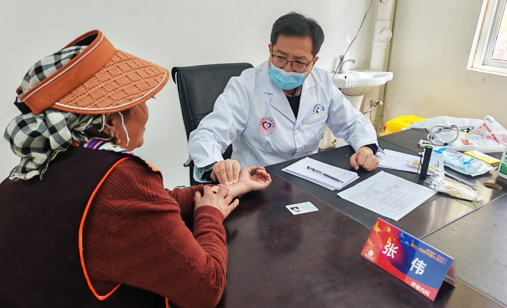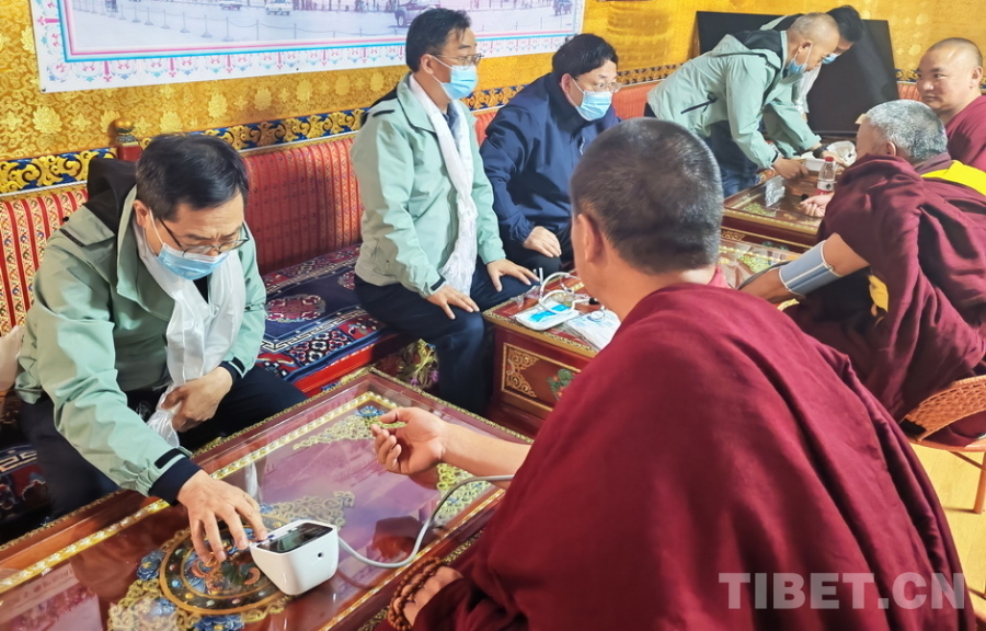 除在沙爾宗鎮(zhèn)衛(wèi)生院設立固定義診點,醫(yī)療專家們還深入鄉(xiāng)村,為行動不便的老人等進行入戶慰問巡診;來到大藏寺,為寺內僧人送醫(yī)送藥。