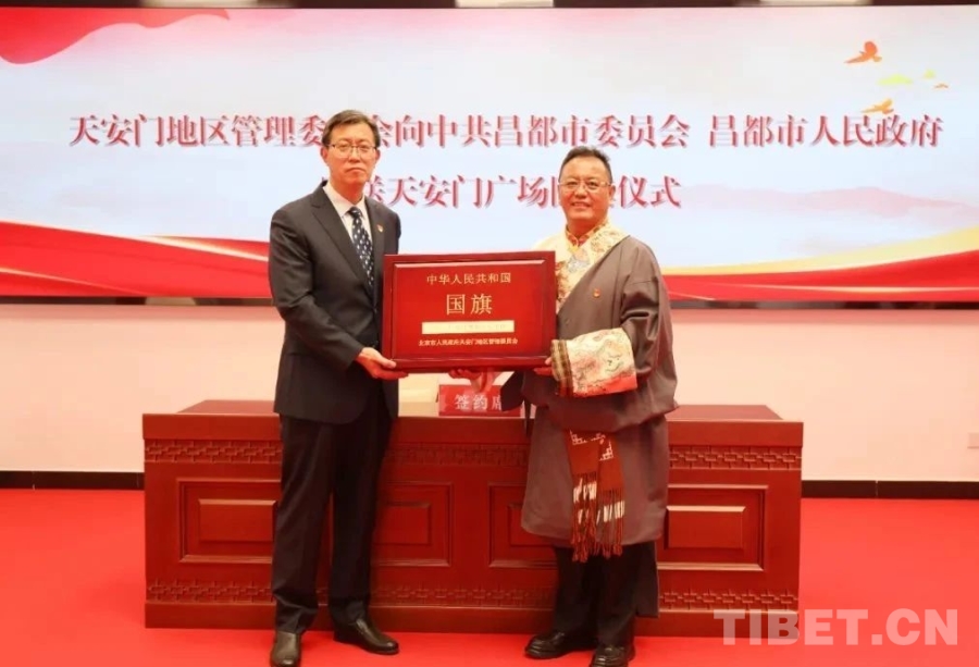 這面由北京市人民政府天安門地區(qū)管理委員會(huì)向昌都市委、市政府贈(zèng)送(編號(hào)2020—0094)的天安門廣場(chǎng)國(guó)旗,在西藏自治區(qū)成立60周年和昌都解放75周年前夕,從首都北京來到了邊疆,極大激發(fā)了昌都全市上下的愛國(guó)榮譽(yù)感和強(qiáng)國(guó)使命感,激勵(lì)各族干部群眾砥礪前行、感恩奮進(jìn)。(中國(guó)西藏網(wǎng) 記者/王茜 陳衛(wèi)國(guó))