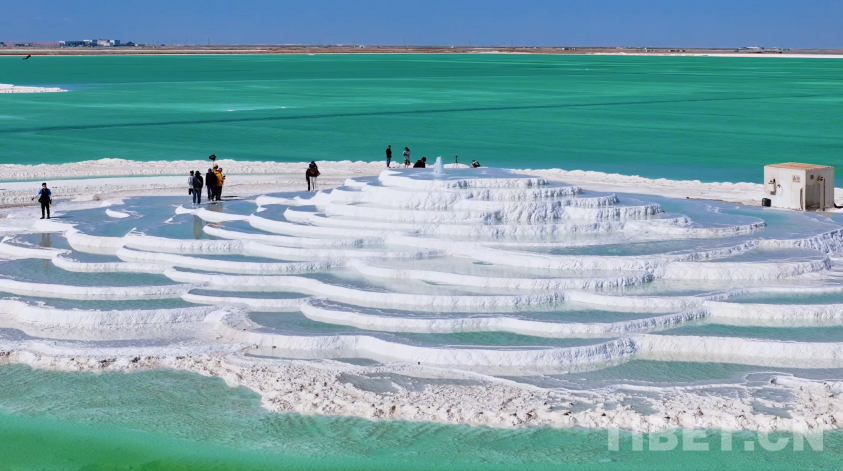 如今,旅游業(yè)已成為察爾汗鹽湖重要的收入之一。圖為游客們打卡千里鹽湖 供圖:青海省文化和旅游廳