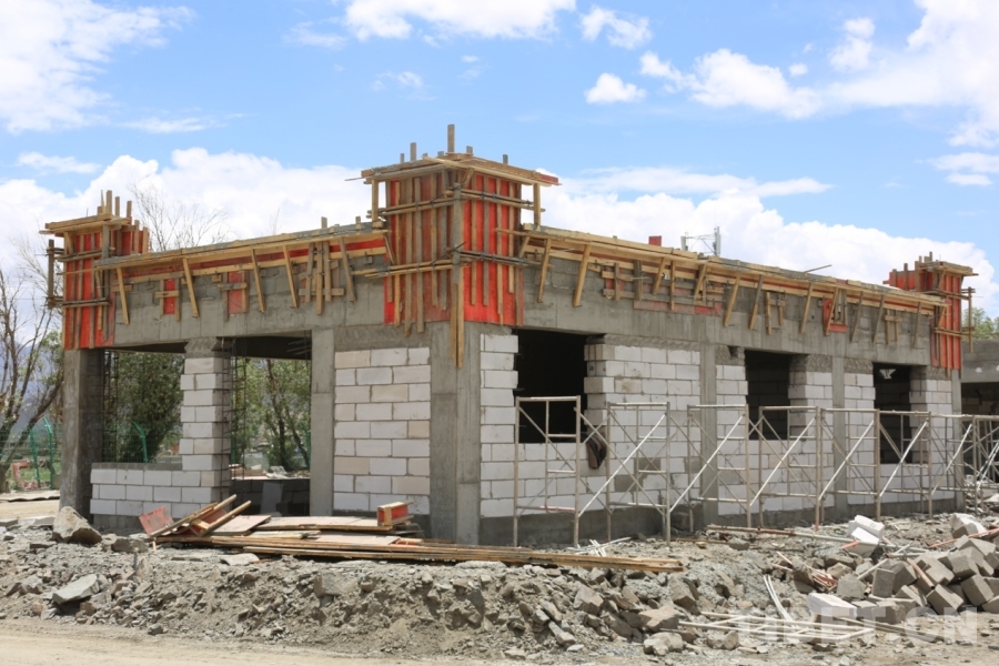 圖為拉孜縣錫欽鄉(xiāng)夏拉蘇村災(zāi)后重建現(xiàn)場