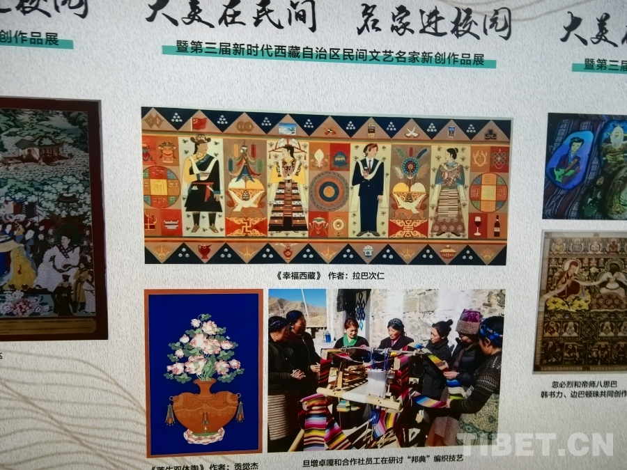 6月20日,“大美在民間——名家進(jìn)校園暨第三屆新時(shí)代西藏自治區(qū)民間文藝名家新創(chuàng)作品展”開展。圖為展覽陳列 攝影:趙釗