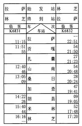 2025年7月16、18、20、21、23、25、27、28、30日、8月1、3、4、6、8、10、11、13、15、17、18、20、22、24、25、27、29、31日拉薩至林芝加開K6831/2次臨時(shí)旅客列車。