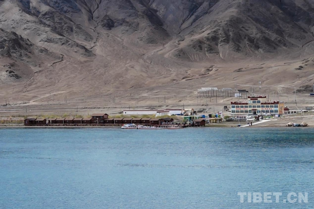 圖為班公湖旅客服務(wù)中心遠(yuǎn)景(無(wú)人機(jī)照片) 攝影:扎西頓珠