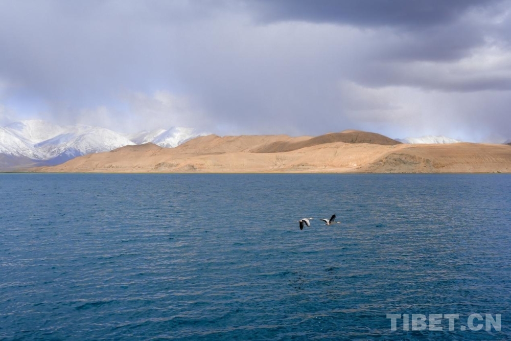 班公湖位于西藏阿里地區(qū)日土縣,湖面海拔4240米,是青藏高原西部最大的湖泊。湖水由東向西含鹽量遞增,因而在陽(yáng)光照射下,班公湖宛如一塊巨大的藍(lán)綠漸變琥珀綴于廣袤沙原。湖中央的鳥島上,鳥舞蹁躚,鷗鷺齊飛,不僅有棕頭鷗、斑頭雁,還有國(guó)家一級(jí)保護(hù)動(dòng)物黑頸鶴等珍稀鳥類。每逢夏季,成千上萬(wàn)的鳥在此繁衍后代,遠(yuǎn)眺鳥島,能見一派沙鷗翔集、群鳥歸巢的壯觀景象。(中國(guó)西藏網(wǎng) 記者/邊子捷)