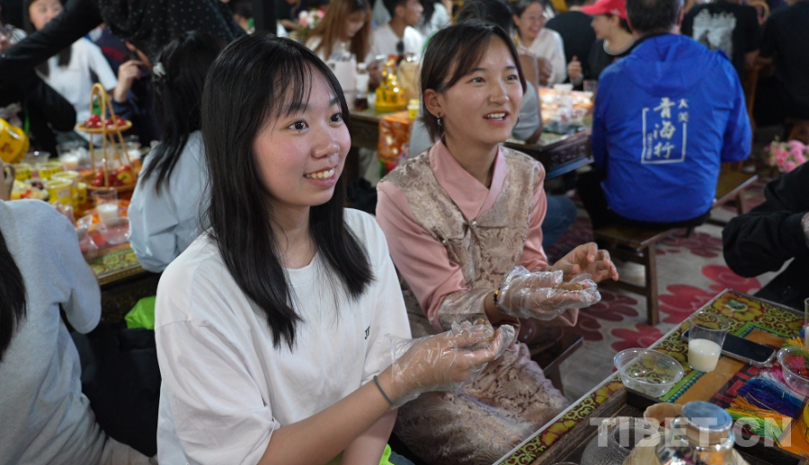 “讓孩子們交朋友、多交流?!边@也是青海省政協(xié)常委、本次研學(xué)團(tuán)團(tuán)長(zhǎng)吳漢忠最初的想法。在位于海晏縣的文迦牧場(chǎng)的星空下,這場(chǎng)“廣度”之旅迎來溫暖篇章。海北藏族自治州的青少年與香港青少年們圍坐在一起,手把手教香港的朋友制作糌粑,還熱情招呼大家喝奶茶、跳鍋莊,自豪地介紹起自家草原上的牛羊?!棒佤尉褪且檬诌@樣順時(shí)針或者逆時(shí)針揉搓,最后成團(tuán),就能吃啦。還可以蘸一蘸我們的奶茶再吃?!毕愀蹖W(xué)生們也積極回應(yīng)著,相互用“扎西德勒”打著招呼,吃著親手制作的糌粑。有人驚喜發(fā)現(xiàn)“這個(gè)糌粑味道好像我家鄉(xiāng)的芝麻糖啊,好香好甜”。