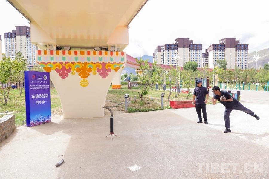 圖為西藏傳統(tǒng)體育運(yùn)動(dòng)項(xiàng)目打牛角體驗(yàn)區(qū)