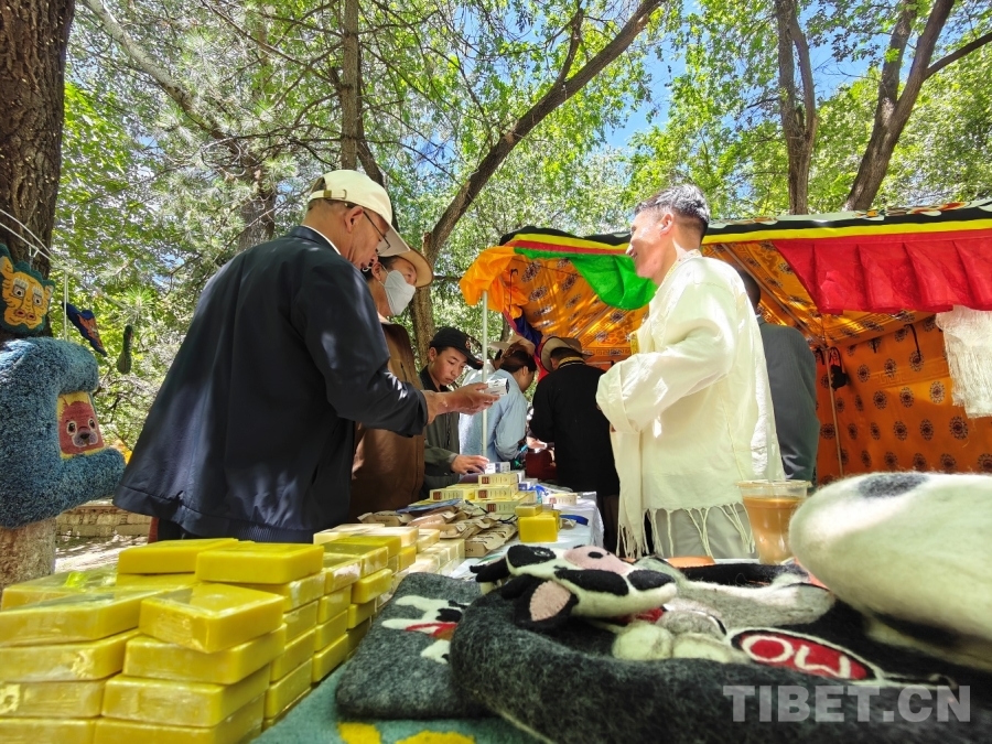 活動現(xiàn)場特別設(shè)置的青海農(nóng)畜產(chǎn)品展區(qū)人頭攢動,牦牛肉、青稞酒、無抗?fàn)I養(yǎng)雞蛋、沙棘果汁、皮具制品等琳瑯滿目,市民游客爭相品嘗體驗,現(xiàn)場氣氛熱烈有序。同期舉辦的“匠心傳承·彩繪天堂”熱貢藝術(shù)精品唐卡展,匯集百幅國家級、省級工藝美術(shù)大師及非遺傳承人的代表作品,既有百年經(jīng)典,又有當(dāng)代創(chuàng)新,展覽將持續(xù)至7月30日。