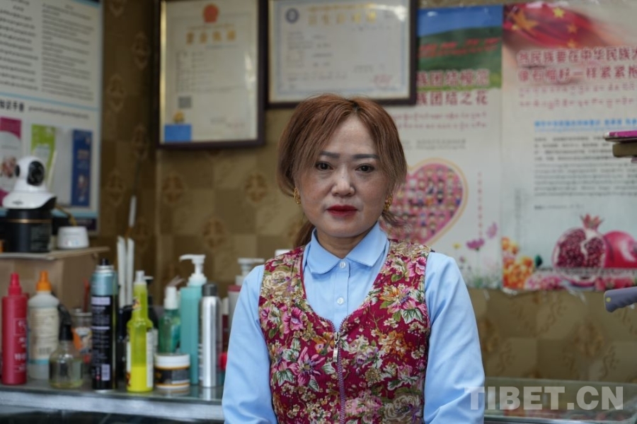中國西藏網訊 7月29日,中國西藏網報道組在那曲市雙湖縣縣城,采訪2022年西藏民族團結進步模范個人、雙湖縣理發(fā)店個體商戶熊碧娟。