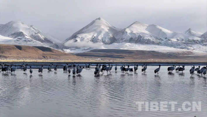 圖為高原上棲息的黑頸鶴