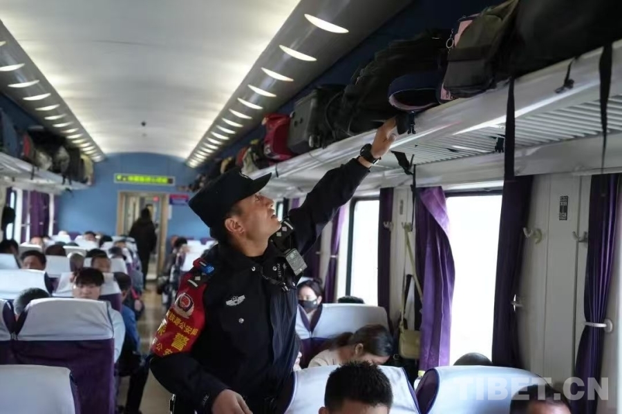 “看好自己的包!貴重物品貼身保管,不要大意了?!薄巴砩纤X,各位一定要蓋好被子,高反很嚴(yán)重!”……拉薩鐵路公安處乘警米瑪次仁的“碎碎念”,是高原列車上最動聽的序曲。他的腳步在車廂過道里來回穿梭,一句句叮囑如同細(xì)密的針腳,慢慢織進(jìn)旅客的旅途里。