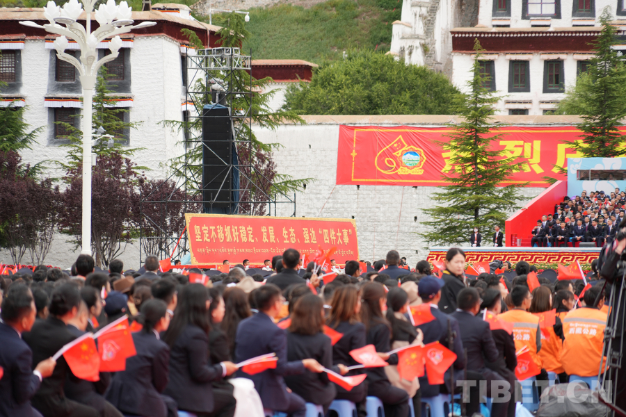 中國(guó)西藏網(wǎng)訊 西藏自治區(qū)成立60周年慶祝大會(huì)于8月21日上午10時(shí)在拉薩隆重舉行。伴隨著歡快的音樂(lè),熱烈歡騰的群眾游行在“旗幟引領(lǐng)”彩車的帶領(lǐng)下正式開始。(中國(guó)西藏網(wǎng) 記者/王淑 馮重霖 劉莉 趙釗 姚浩然 楊眉笑 德吉卓瑪 趙振宇 賈華加 邊子捷 次旦拉姆 旦曲)