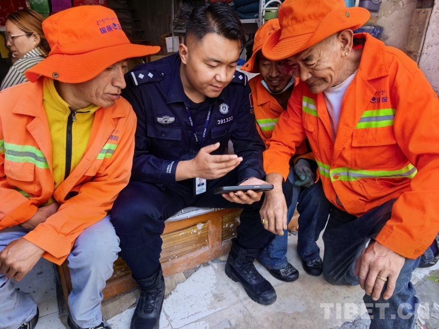 圖為聶拉木出入境邊防檢查站民警與口岸務工群眾共同觀看西藏自治區(qū)成立60周年慶祝大會