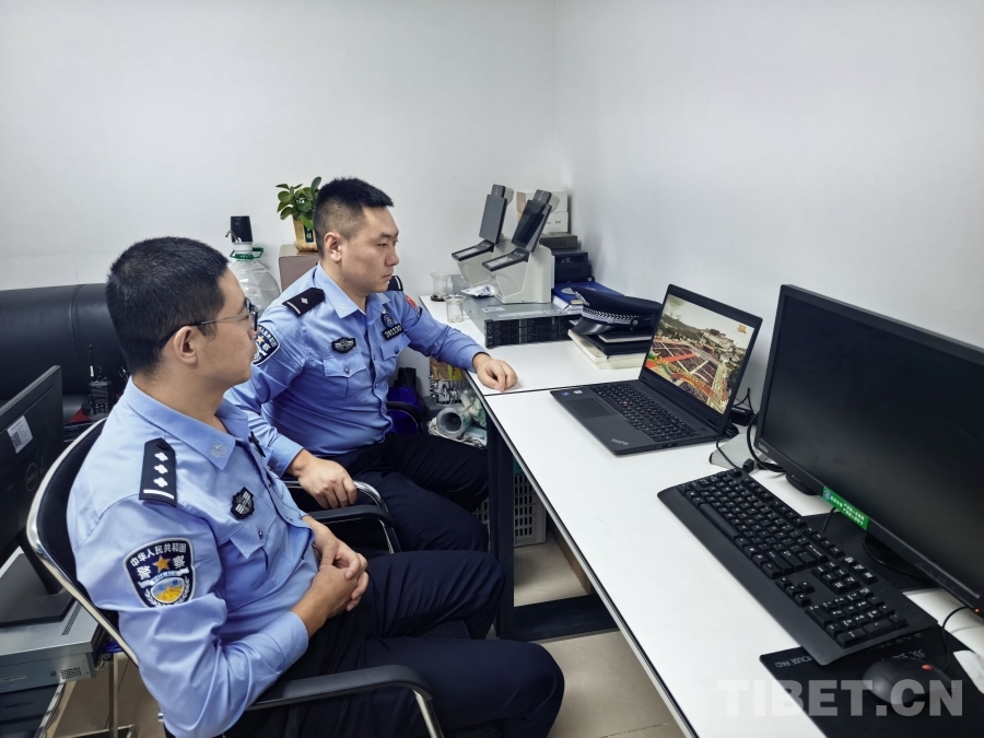 圖為基層民警觀看西藏自治區(qū)成立60周年慶祝大會