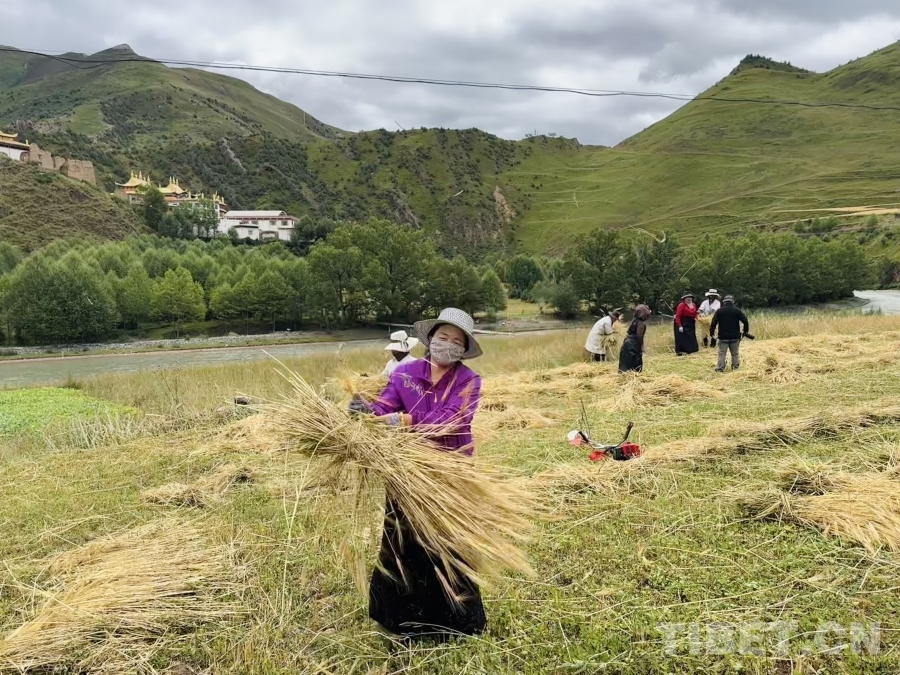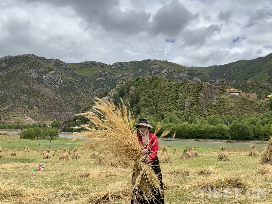 金穗低頭,豐收在望。孜榮村人們用勤勞的雙手繼續(xù)書(shū)寫(xiě)著“高原糧倉(cāng)”的豐收故事。(中國(guó)西藏網(wǎng) 記者/畢然 龍真多吉)