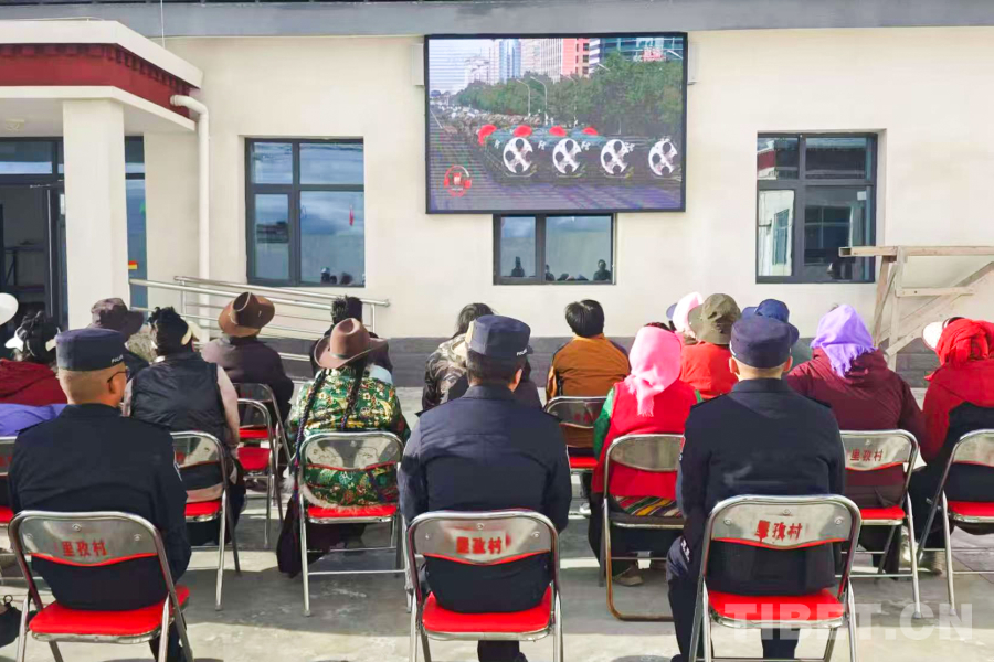 圖為日喀則邊境管理支隊(duì)仲巴邊境管理大隊(duì)里孜邊境派出所與轄區(qū)群眾共同觀看紀(jì)念中國(guó)人民抗日戰(zhàn)爭(zhēng)暨世界反法西斯戰(zhàn)爭(zhēng)勝利80周年大會(huì) 攝影:楊應(yīng)發(fā)