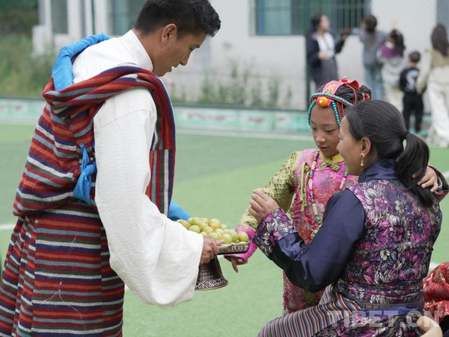 大家圍坐交流,家長們細(xì)致講述藏裝配飾的象征意義,孩子們認(rèn)真聽著縣群團工作部老師講述節(jié)日傳說。在服飾走秀環(huán)節(jié),藏族少女白瑪央吉牽著妹妹的手款款走來,盡顯藏族服飾的華美與端莊;鍋莊舞表演時,人們手拉手,舞步踏響同一節(jié)奏。品嘗特色美食時,亞東李子、奶渣、鮭魚罐頭等特色美食登臺亮相。支教團成員與家長化身“美食代言人”,盡情分享美食,樂在其中。
