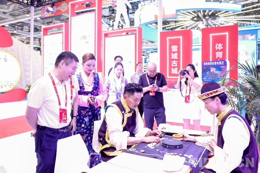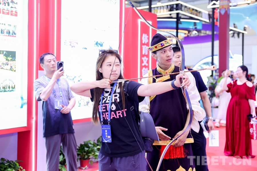 專業(yè)藝術(shù)團(tuán)精心排演的《幸福西藏》節(jié)目在西藏展廳輪番展演;搭建響箭、秀茲(藏式骰子)體驗(yàn)區(qū),高度還原世界海拔最高的龍舟賽——西藏自治區(qū)端午節(jié)牛皮船(龍舟)賽開幕式場景,吸引了廣大游客駐足觀看,踴躍參與民族傳統(tǒng)體育項(xiàng)目,參與“畫龍點(diǎn)睛”儀式。另外精心準(zhǔn)備的體育文創(chuàng)產(chǎn)品,深受游客喜愛,爭相領(lǐng)取。