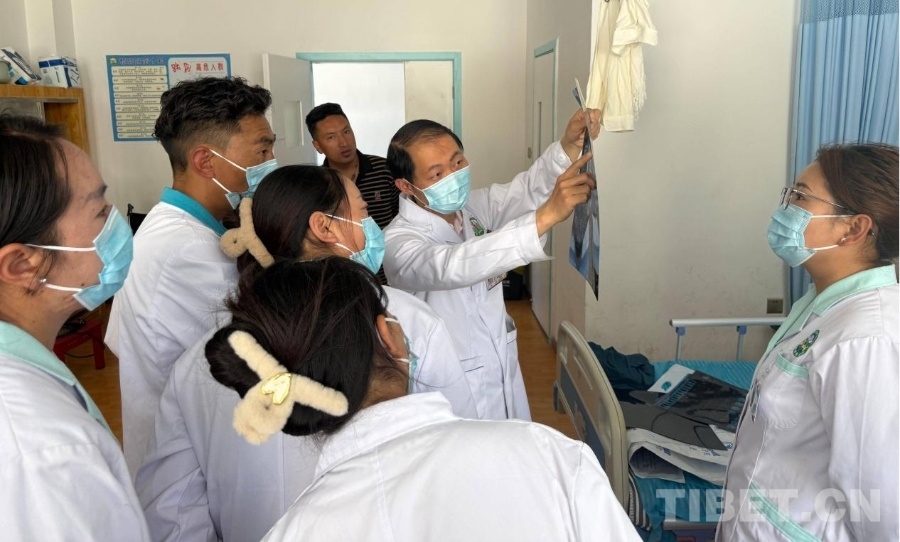 圖為西藏自治區(qū)昌都市洛隆縣藏醫(yī)院的現場診治與討論現場