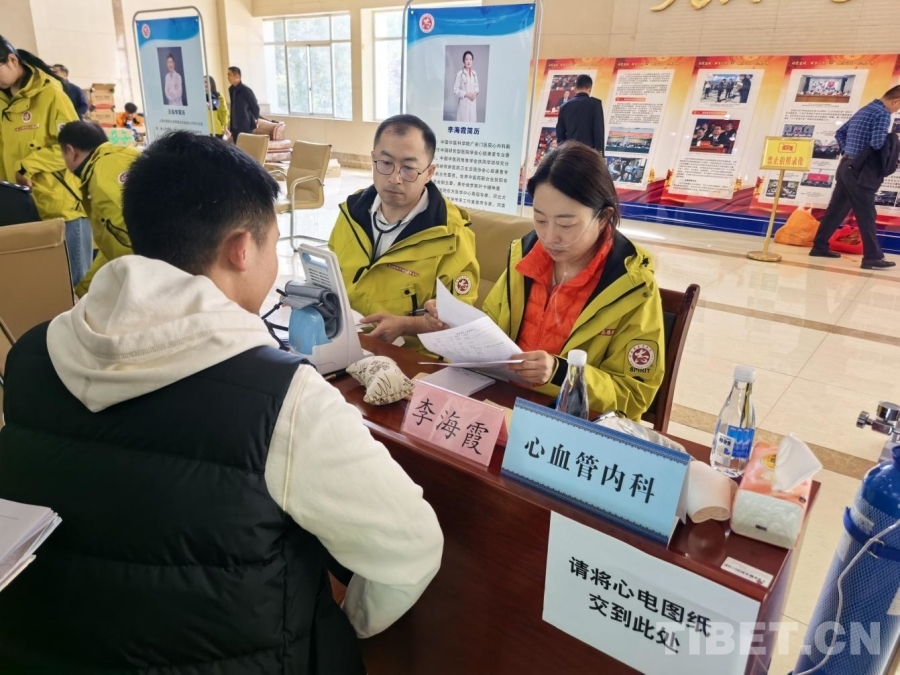 圖為“雪域高原扶陽(yáng)護(hù)心”健康義診的專家為社區(qū)群眾診療