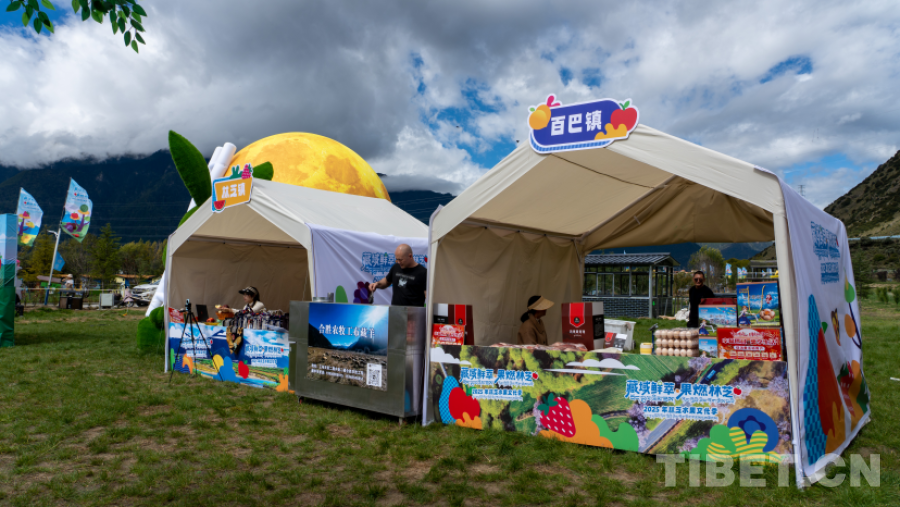 活動當(dāng)天上午,水果狂歡市集熱鬧開市。來自西藏林芝市巴宜區(qū)七個鄉(xiāng)鎮(zhèn)的特色農(nóng)特產(chǎn)品齊聚一堂,林芝蘋果、米瑞黃桃等新鮮水果香氣四溢,搭配藏香豬、靈芝、松茸、枸杞原漿等高原真品琳瑯滿目,共同勾勒出一幅“舌尖上的林芝”豐收畫卷?,F(xiàn)場還設(shè)置仿真果樹、水果龍門、月亮氣模等沉浸式打卡場景,贏得游客流連駐足,紛紛在社交媒體平臺分享這份“高原甜蜜”。
