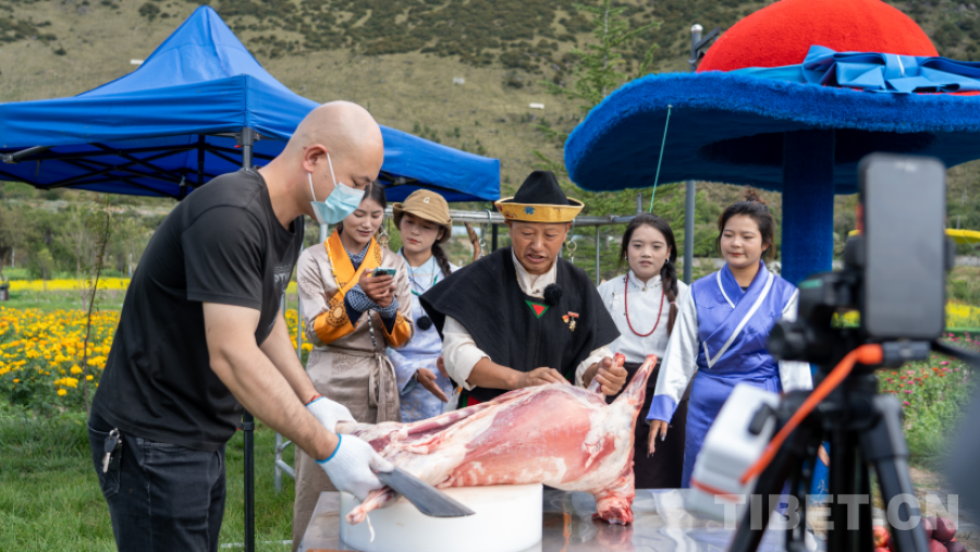 圖為活動現(xiàn)場直播介紹藏香豬