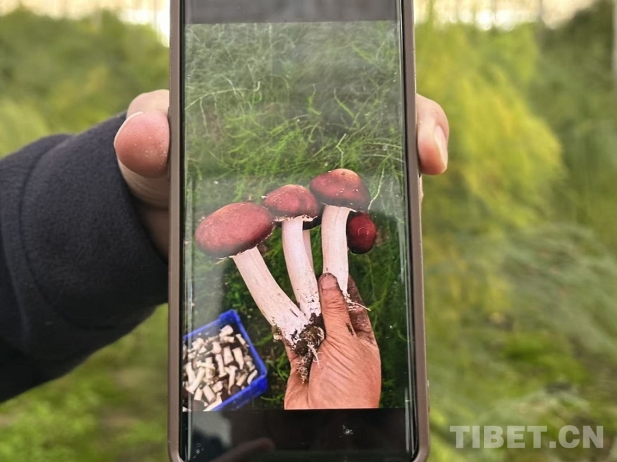 圖為李東平展示手機里的赤松茸照片 攝影:楊眉笑