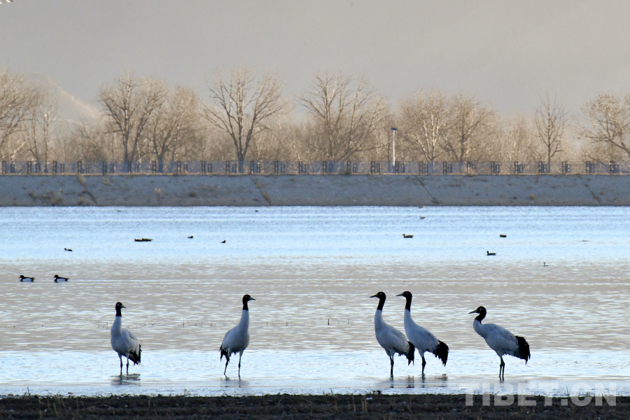 圖為拉薩市林周縣卡孜水庫內越冬的黑頸鶴(攝于11月23日)攝影:趙振宇