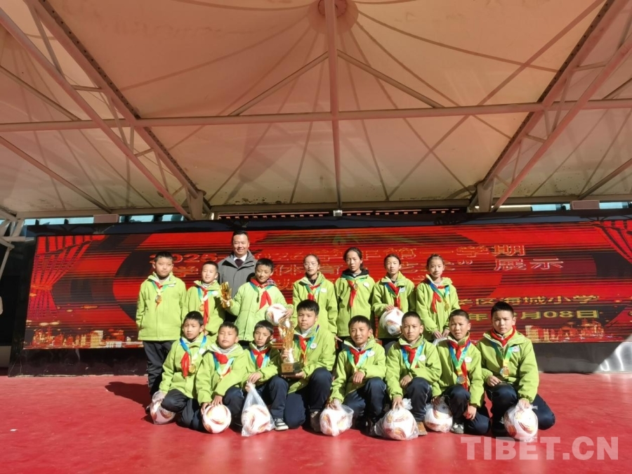 圖為拉薩市城關區(qū)教育局副局長、黨組成員多吉扎西為獲獎隊伍頒獎 攝影:馬靜