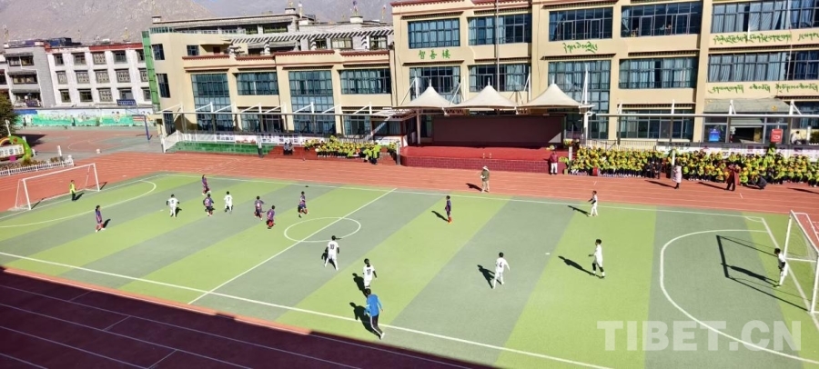 圖為拉薩市城關區(qū)海城小學第九屆“未來之星”校園足球聯(lián)賽比賽現場 攝影:多吉扎巴
